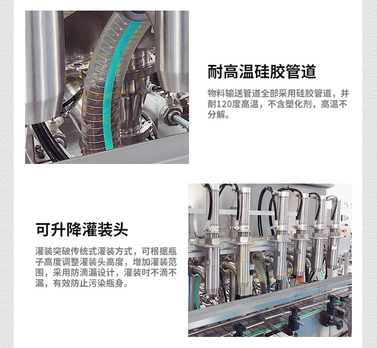 全自動八頭醬料灌裝機(jī)采用活塞式灌裝原理,適用于調(diào)味品中帶顆粒并且濃度較大的辣椒醬、豆瓣醬、花生醬、香菇醬、果醬