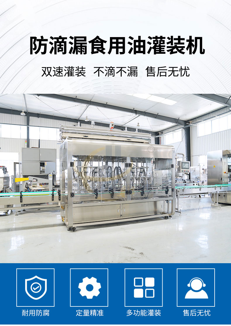十二頭食用油灌裝機(jī)根據(jù)用戶需求非標(biāo)定制,灌裝部分為十二頭灌裝機(jī),適用于不同瓶子的灌裝,可配備壓蓋機(jī)和貼標(biāo)機(jī),自動(dòng)化程度高。